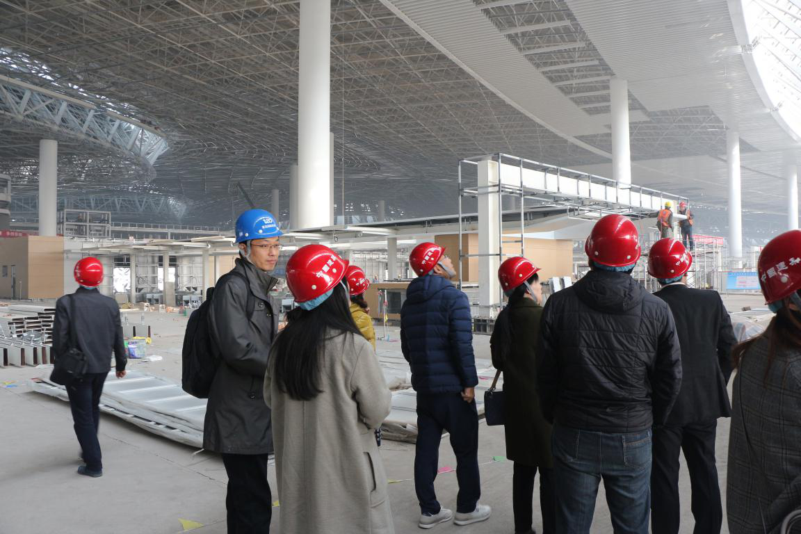 在中铁八局技术人员的陪同下,党员们首先观看了“青岛胶东国际机场建设”专题宣传片,然后进入在建的航站楼内部,详细了解工程特点和施工细节,并结合各自的专业与现场技术人员进行了学习和交流。