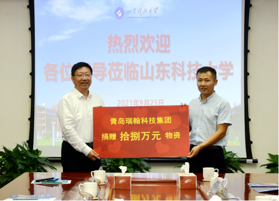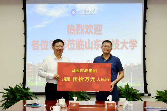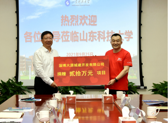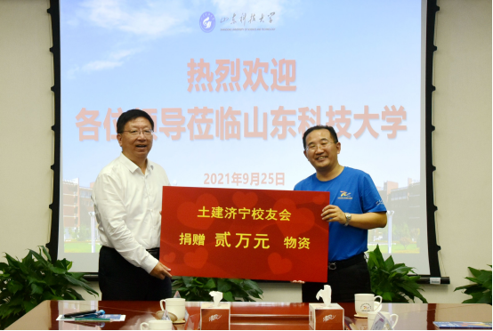 捐赠仪式上,日照市政集团、土建泰安校友会、土建济宁校友会、中交一航局城交公司校友会、青岛瑞翰科技集团、淄博大源城建开发有限公司等六家校友企业和校友会向学校捐赠,支持学校教育事业发展。张英杰代表学校接受捐赠并向校友们回赠捐赠证书。
