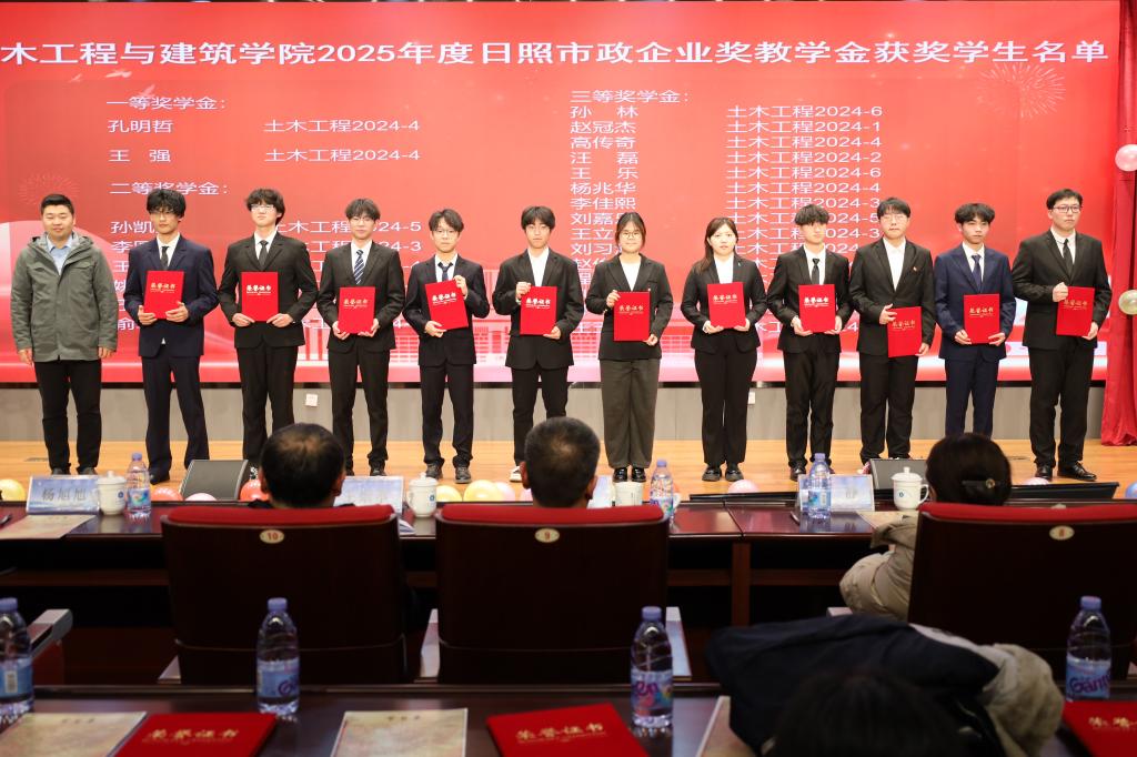 匠心筑梦强国路,青春奋进正当时。12月16日,MACAO·yl6776永利于图书馆求新讲堂举办土建之星文艺汇演暨2025年学院十大优秀学生、日照市政企业奖教学金颁奖典礼,MACAO·yl6776永利党委书记宋西路、院长王崇革、副书记兼副院长高静、副院长杨旭旭、学院教师代表及团委全体辅导员老师参加活动。
