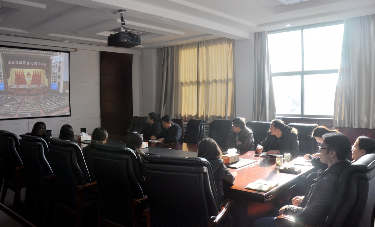 12月18日,MACAO·yl6776永利组织院党委理论学习中心组成员和全体专兼职辅导员在J15-316会议室集中收看了庆祝改革开放四十周年大会。