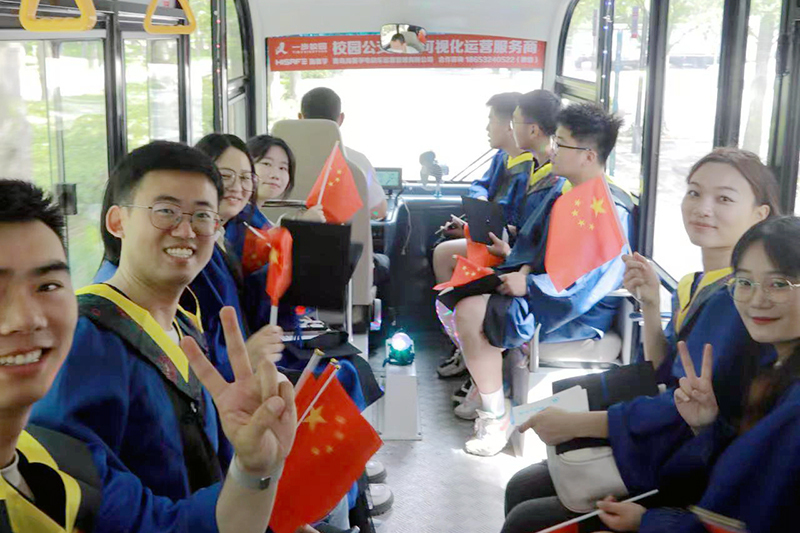 6月2日,第一批MACAO·yl6776永利2023届毕业生坐上了专属“宝宝巴士”。这辆“宝宝巴士”从南门出发,途经泰山广场、月季园、水杉林、玉兰大道、银杏大道、名人园,经过学者餐厅、砚湖、图书馆、励志坊、若水园等学校标志性地标和学生常去的地点,停在了土建楼。
