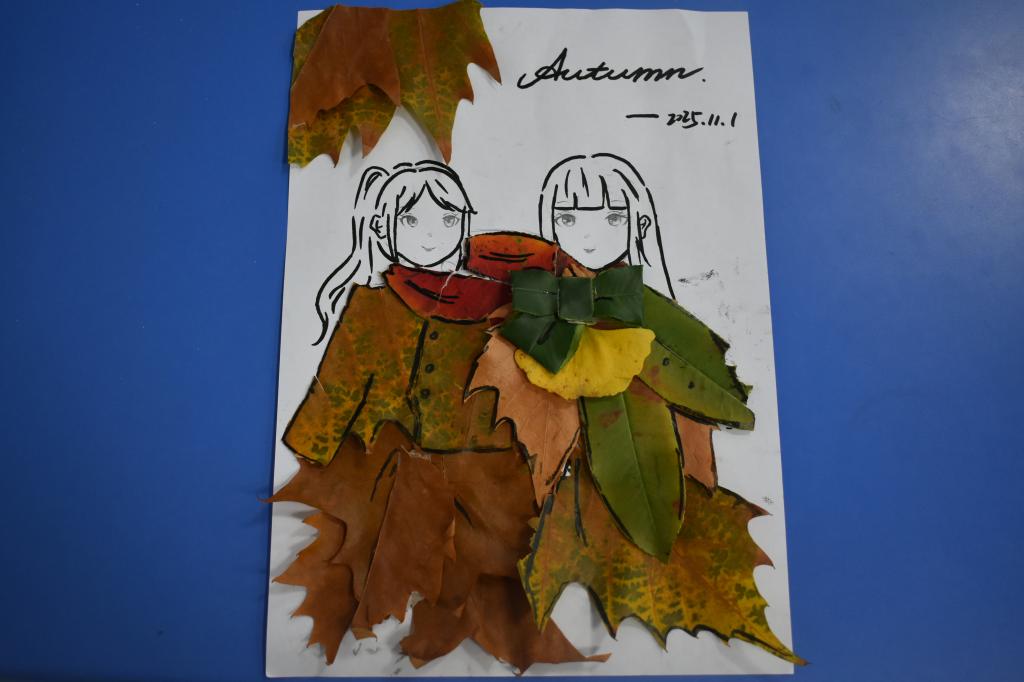活动现场,同学们从自备的材料袋中精心挑选形态、色彩各异的树叶,以自然素材为创作基础开启艺术构思。在两个小时的沉浸式制作中,一件件独具特色的叶贴作品相继完成,一片片原本普通的落叶,在同学们的巧思与巧手雕琢下被赋予新的生命力,生动诠释出秋日的浪漫意蕴与手工艺术的独特魅力。活动尾声,所有参赛作品在专属展板上完成集中陈列,同学们相互交流创作心得,现场氛围热烈融洽。