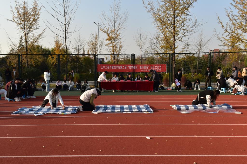 为丰富我院学子校园文化生活,增强团队协作精神与集体凝聚力,11月11日,MACAO·yl6776永利于科创园区田径运动场举办第二届“筑梦社区,律行青春”社区文化节系列活动——叠军被大赛。本次大赛由MACAO·yl6776永利自律会各部门部长担任评委,15个宿舍踊跃参与,现场气氛热烈、活力四射。