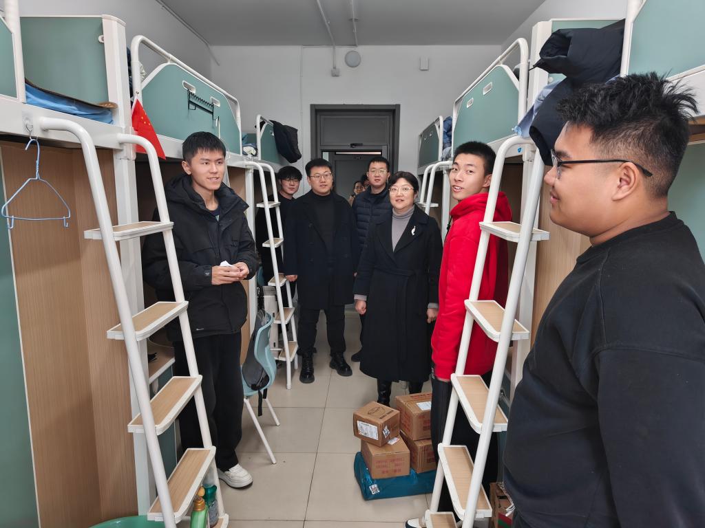 在学生宿舍,辅导员老师们重点查看了宿舍家具、门锁更换及使用情况,逐一检查床铺、衣柜、书桌等家具的稳固性,细致查看门锁更换后的安全性,对排查中发现的轻微隐患现场督促整改,确保学生居住安全。同时,高静与返校学生亲切座谈交流,耐心询问学生假期生活、返校途中情况及新学期适应状态,细致了解学生对宿舍装修、住宿条件的意见建议,认真倾听学生在学业发展、生活保障等方面的困难和诉求。针对学生提出的合理建议,辅导员老师们现场记录、明确整改方向;对于学生遇到的实际困难,逐一耐心回应、积极协调解决,用暖心话语和务实行动,让学生感受到学院的关怀与温暖。